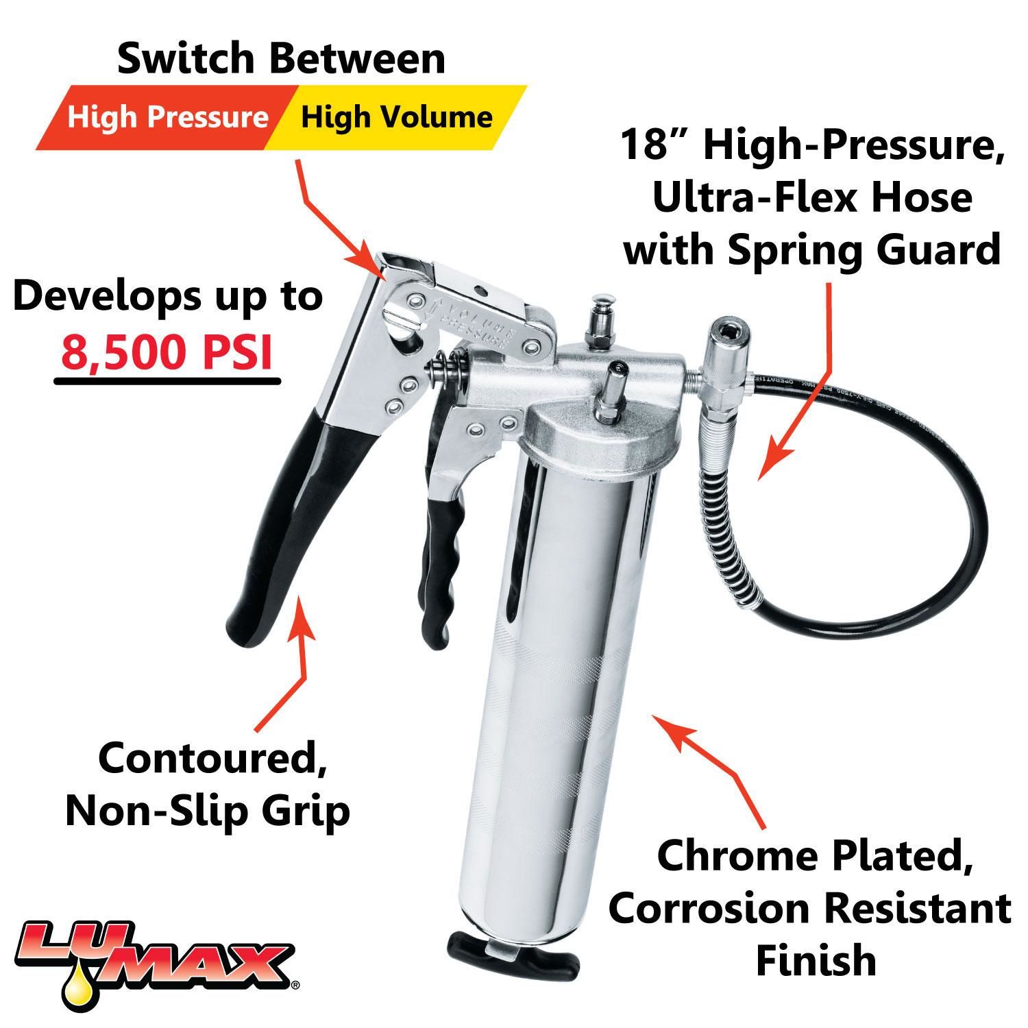 Lumax Heavy Duty Premium DualLeverage Pistol Grease Gun